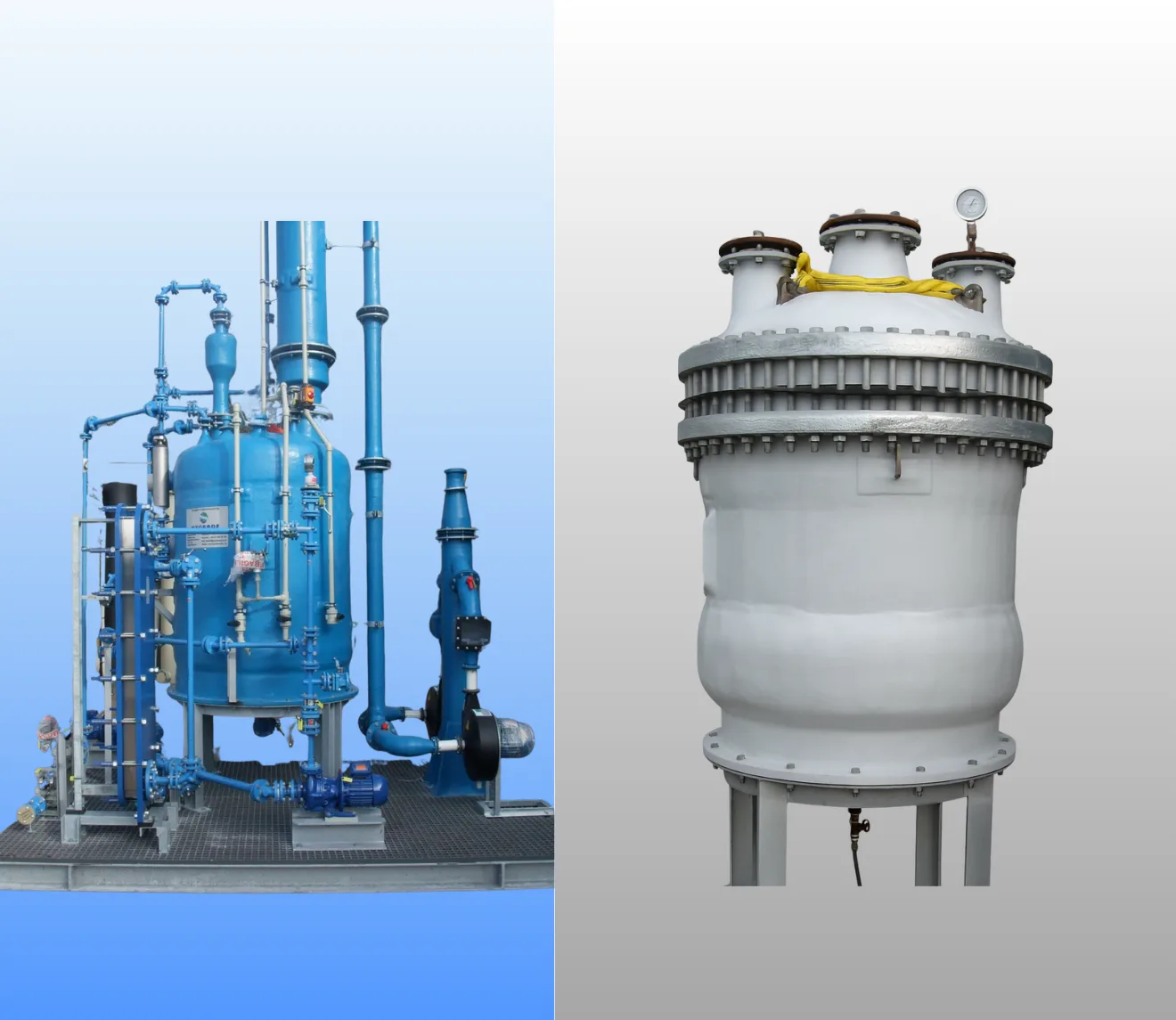 Venturi scrubber vessels fabricated in GRP and thermoplastics, with geometry, materials and nozzle arrangements defined by the client specification.