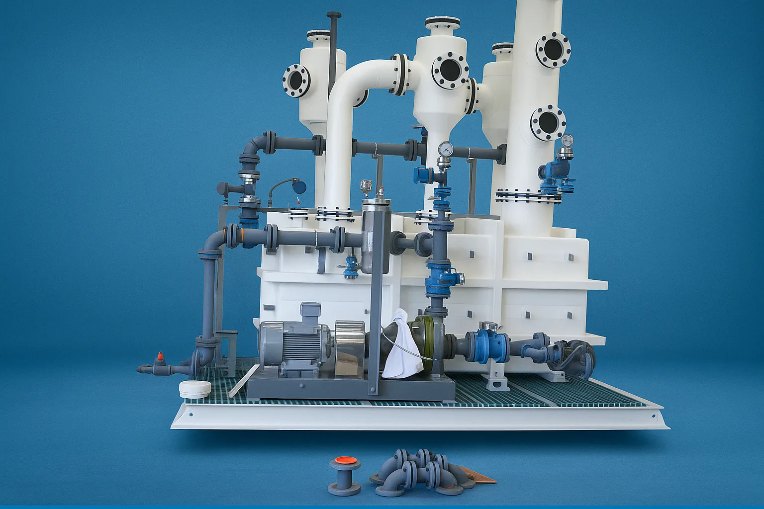 ERG Hygrade manufactures skid-mounted fabricated packages incorporating tanks, vessels and associated plastic pipework, supplied as coordinated assemblies to support efficient site installation.